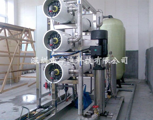 反滲透水處理設(shè)備主要是借助反滲透膜,以壓力為推動力的膜分離技術(shù),水分子不斷地透過膜,而另一端截留離子、有機物、細菌、病毒等雜質(zhì),水的脫鹽率高達99%左右,從而達到分離凈化目的。